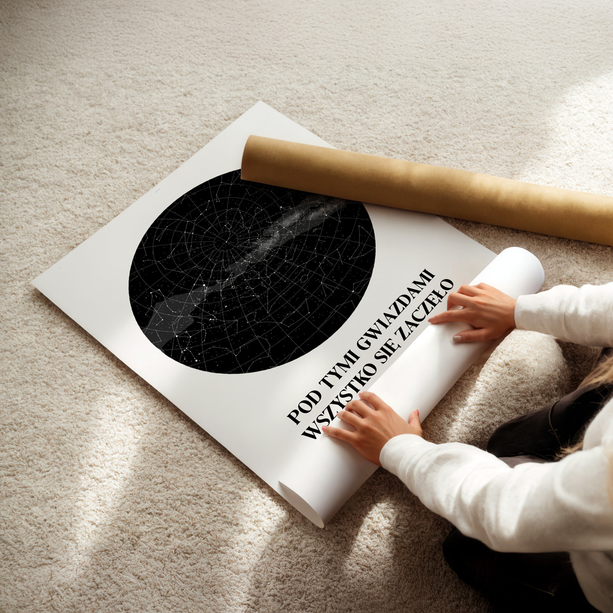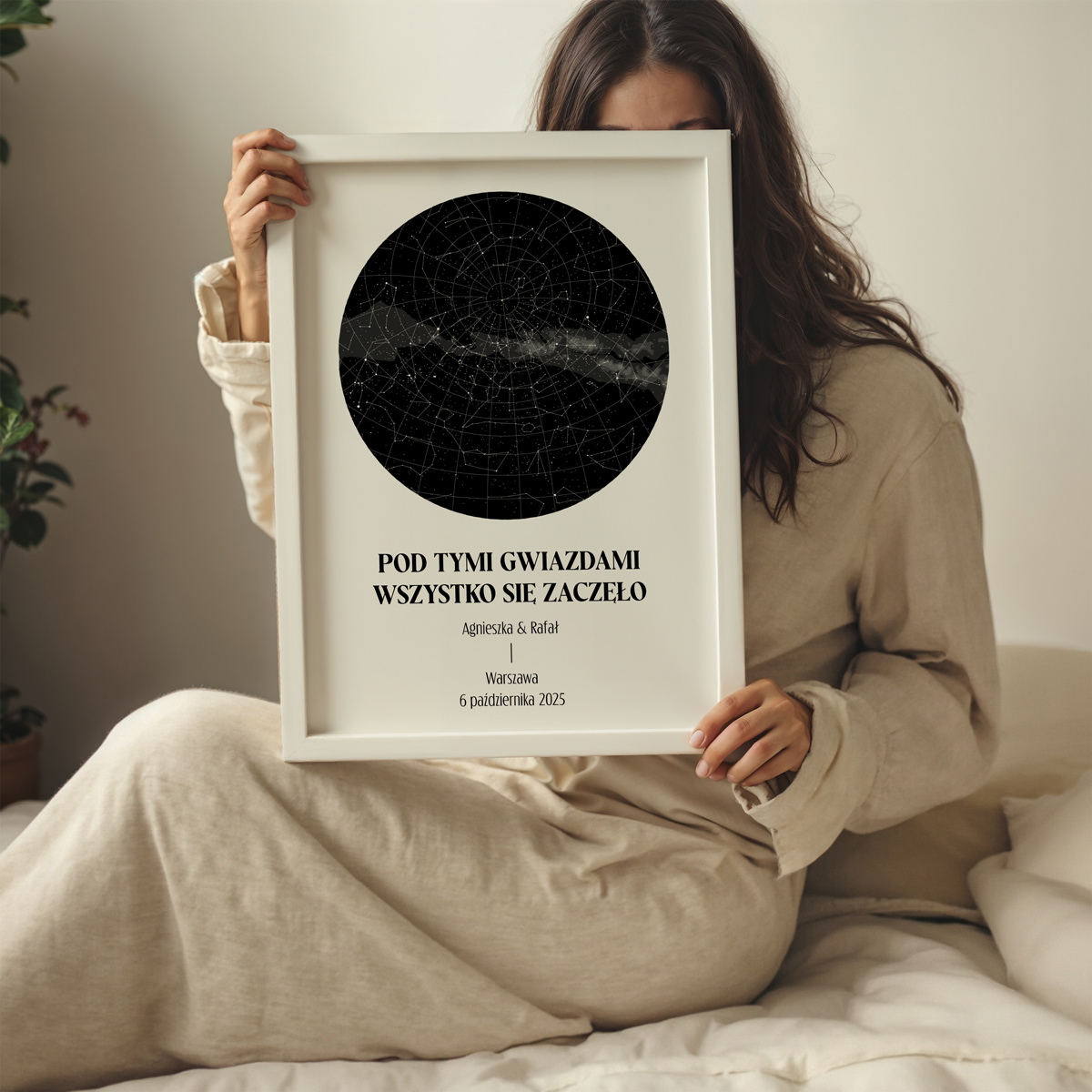 Wyjątkowy plakat personalizowany przedstawiający układ gwiazd z dowolnego miejsca i dnia. Idealny prezent na rocznicę, ślub, urodziny lub walentynki – stwórz pamiątkę, która uchwyci najważniejszy moment w Waszej historii.