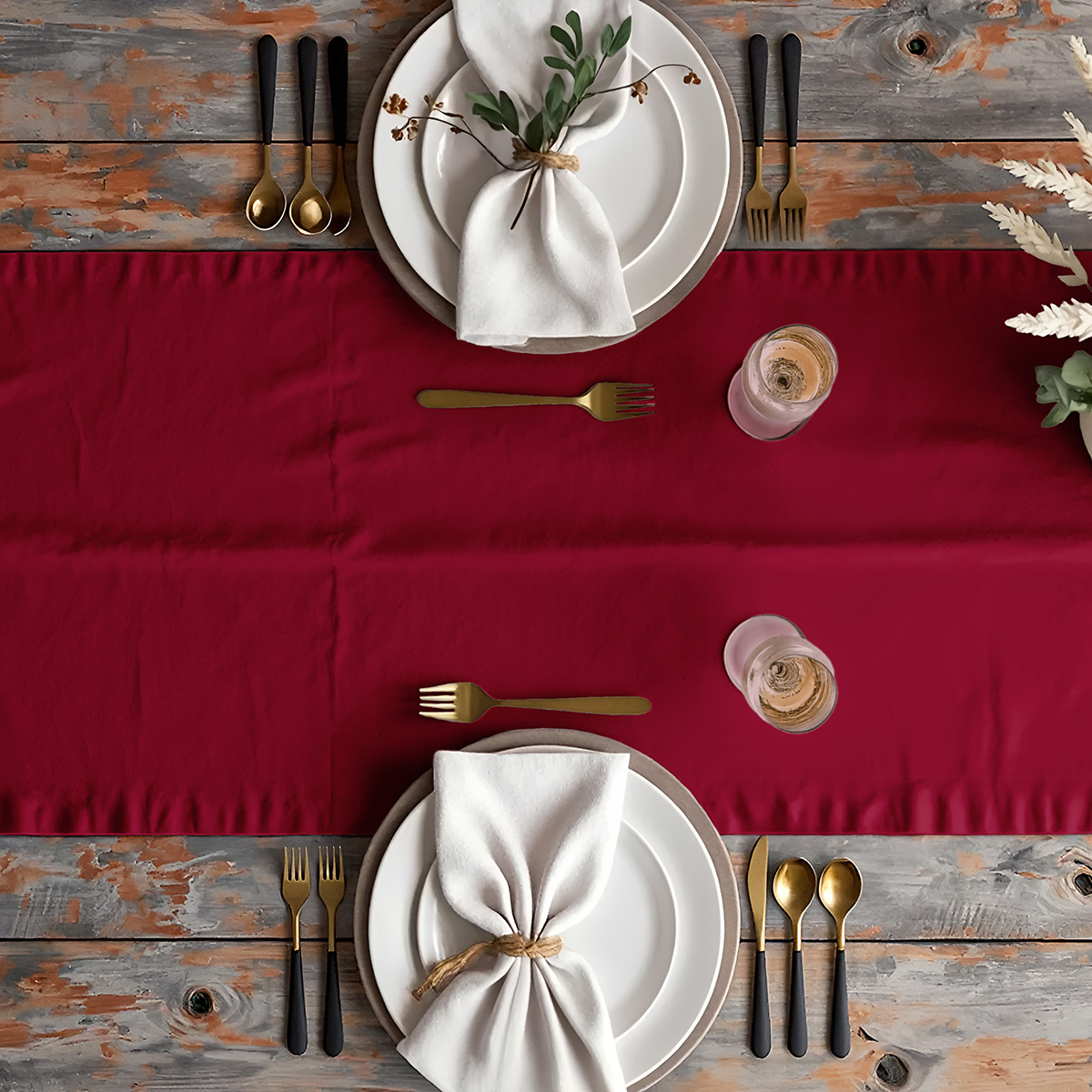 Ten jednolity bieżnik przyciąga stonowaną głębią koloru i minimalistycznym wykończeniem, dzięki czemu świetnie komponuje się zarówno z rustykalnym drewnianym stołem, jak i nowoczesną zastawą. Jego gładka powierzchnia pozwala na stworzenie spójnej aranżacji stołu przy różnych okazjach — od codziennego posiłku po kameralne przyjęcie.