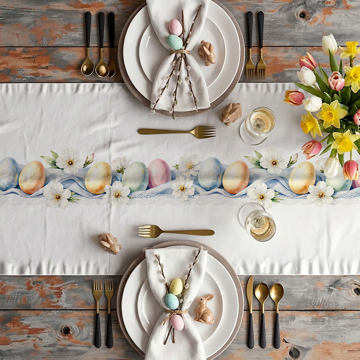 Druk o wysokiej rozdzielczości oddaje detale kwiatów i cieniowania pisanek, a miękka struktura materiału zapewnia przyjemny dotyk przy nakładaniu na stół. Bieżnik sprawdzi się jako centralny element świątecznej dekoracji, łatwo łączy się z naturalnymi dodatkami, drewnianymi akcentami i prostą zastawą. Dzięki trwałym kolorom i starannemu wykończeniu udekoruje stół podczas wielu świątecznych spotkań, zachowując świeży wygląd po wielokrotnym użytkowaniu.