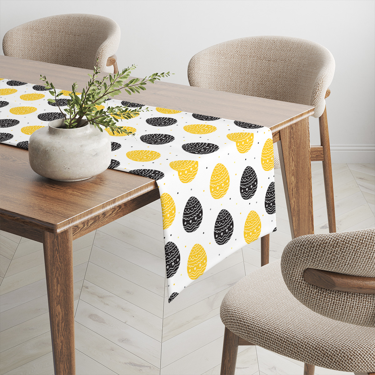 Bieżnik wielkanocny na stół – wielkanocne pisanki w żółci i czerni