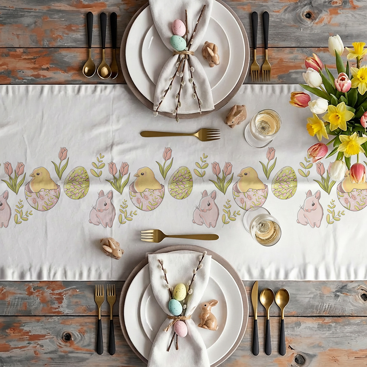 Użyj go jako centralnego elementu dekoracji, łącząc z wiosennymi kwiatami i subtelnymi dodatkami, aby stworzyć przytulne i stylowe nakrycie stołu. To prosty sposób na odświeżenie aranżacji i nadanie świątecznego nastroju.