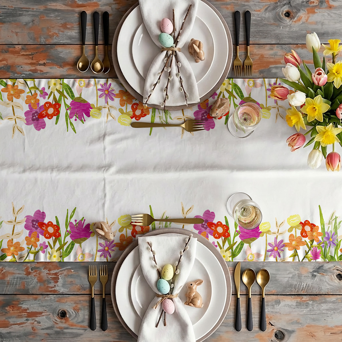 Wielkanocny bieżnik z wiosennym bukietem – malowane łąkowe kwiaty