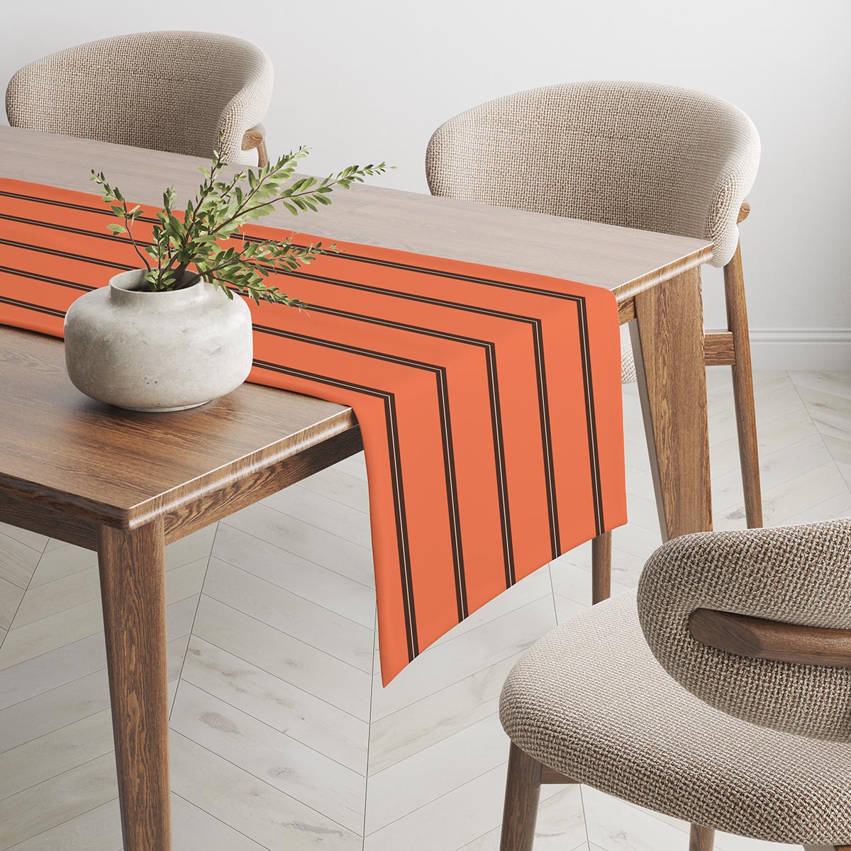 Pomarańczowy bieżnik na stół – ceglaste paski z brązowym akcentem