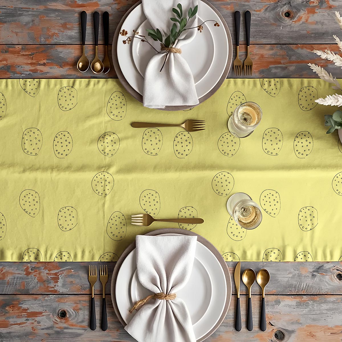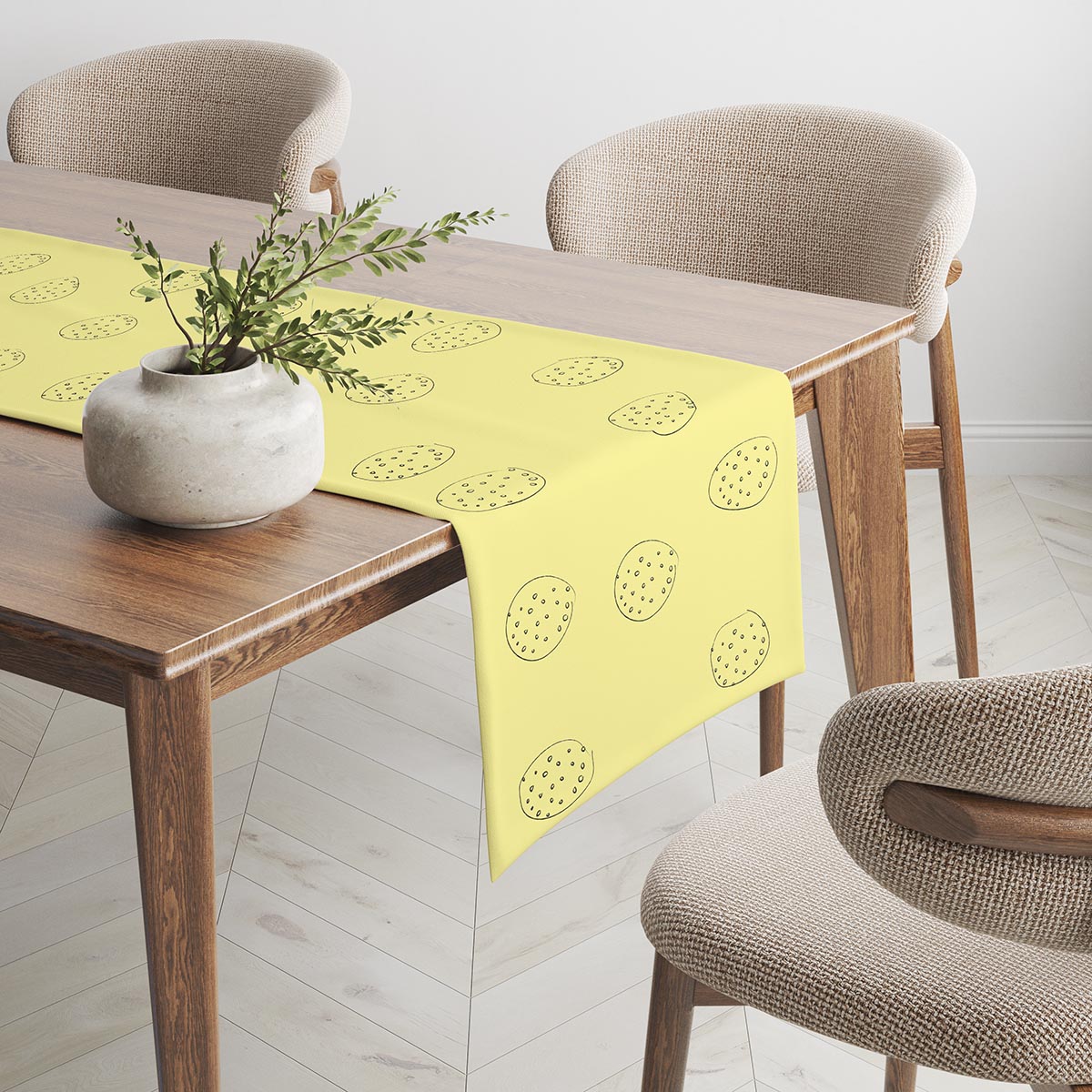 Żółty bieżnik na stół na wymiar – łagodne okręgi z kropeczkami