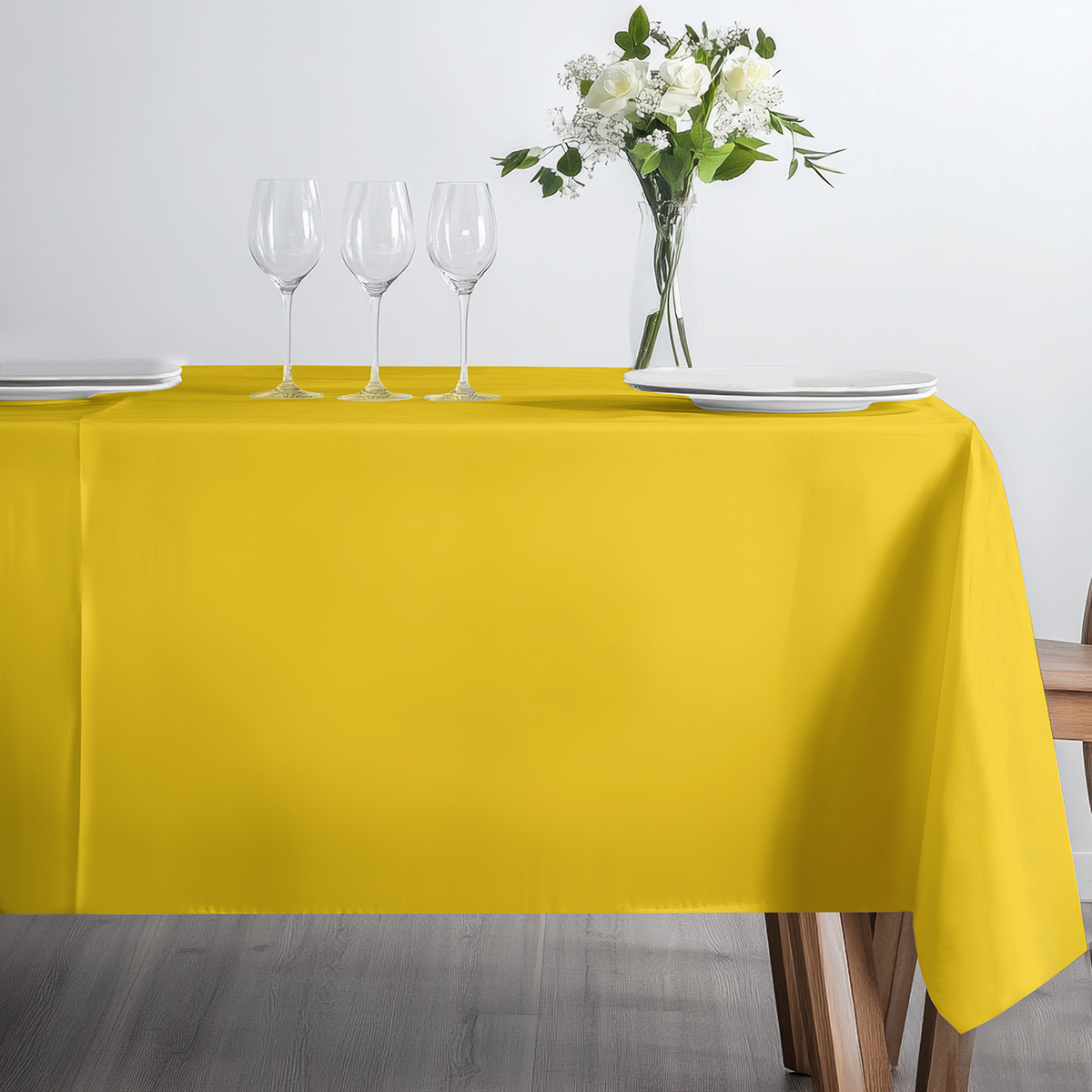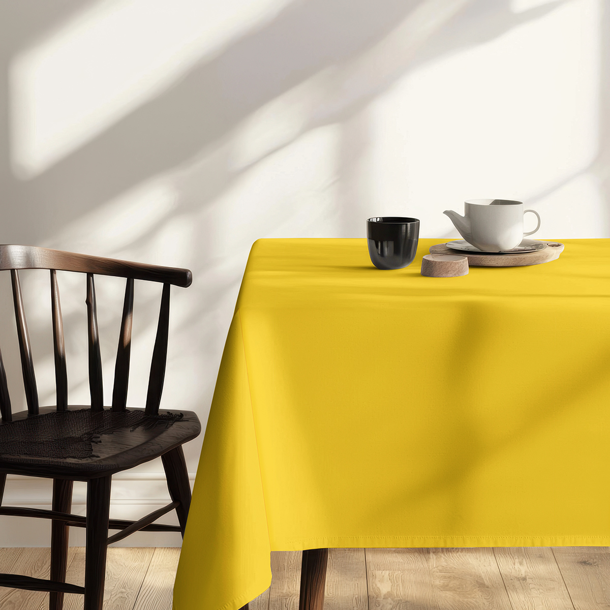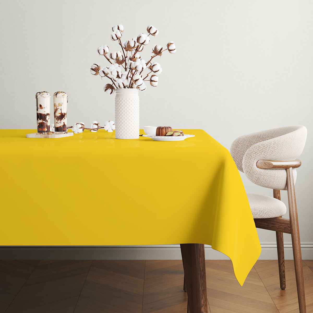 Żółty obrus wielkanocny na wymiar z kolekcji słoneczny nastrój wniesie do stołu ciepły, wiosenny klimat. Gładka, jednokolorowa tkanina z drukiem sublimacyjnym najwyższej jakości zapewnia trwałość barwy i eleganckie wykończenie.