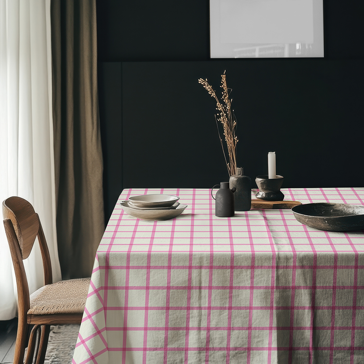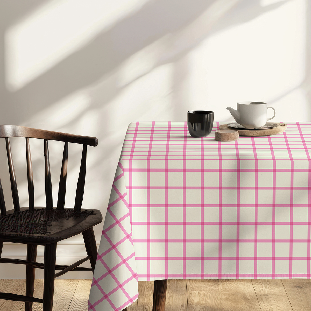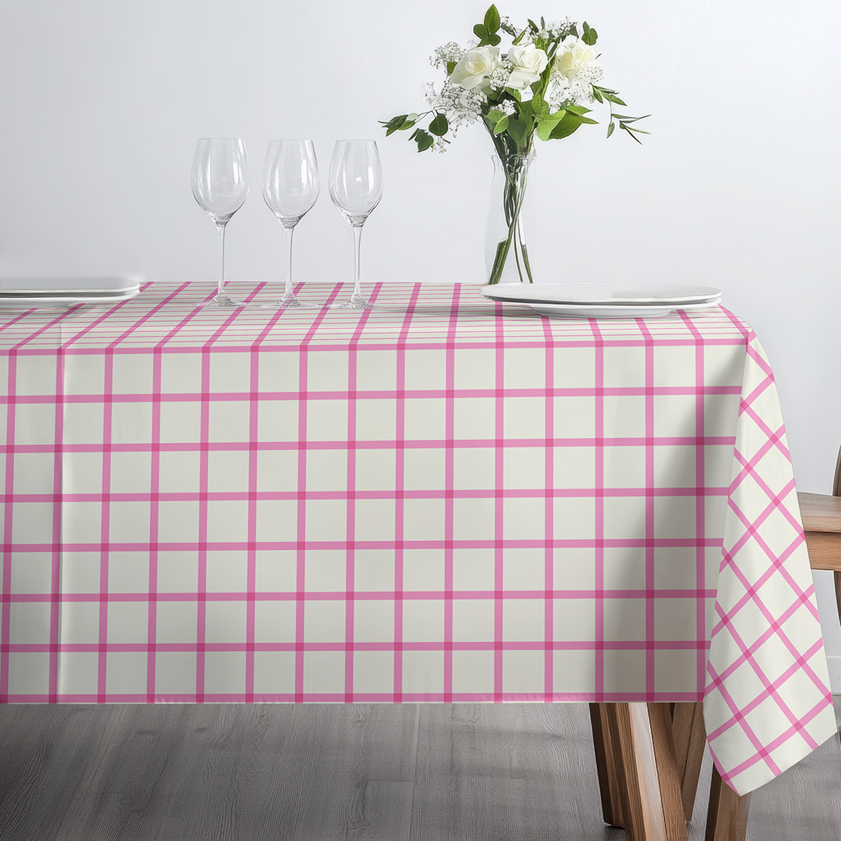 Subtelny obrus w różową kratę wprowadza do wnętrza świeży akcent i lekkość. Trwały materiał i estetyczne wykończenie sprawiają, że idealnie nadaje się zarówno na codzienne posiłki, jak i eleganckie spotkania.