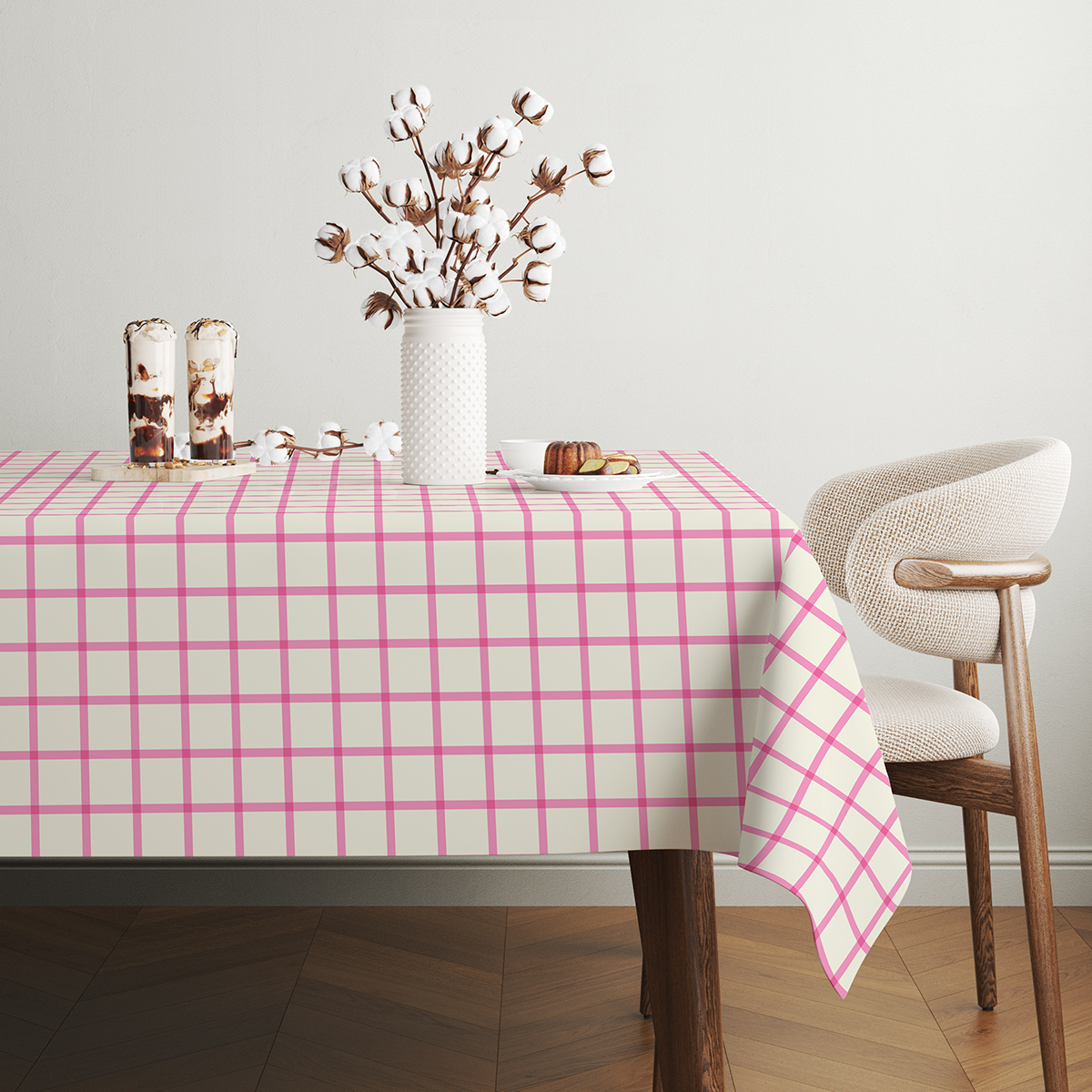 Świetnie komponuje się z naturalnym drewnem i minimalistycznymi dekoracjami — wprowadzi delikatny, kobiecy akcent bez przesady. Dzięki ponadczasowej kracie możesz go używać na co dzień lub podczas wyjątkowych okazji, by szybko odmienić wygląd stołu.