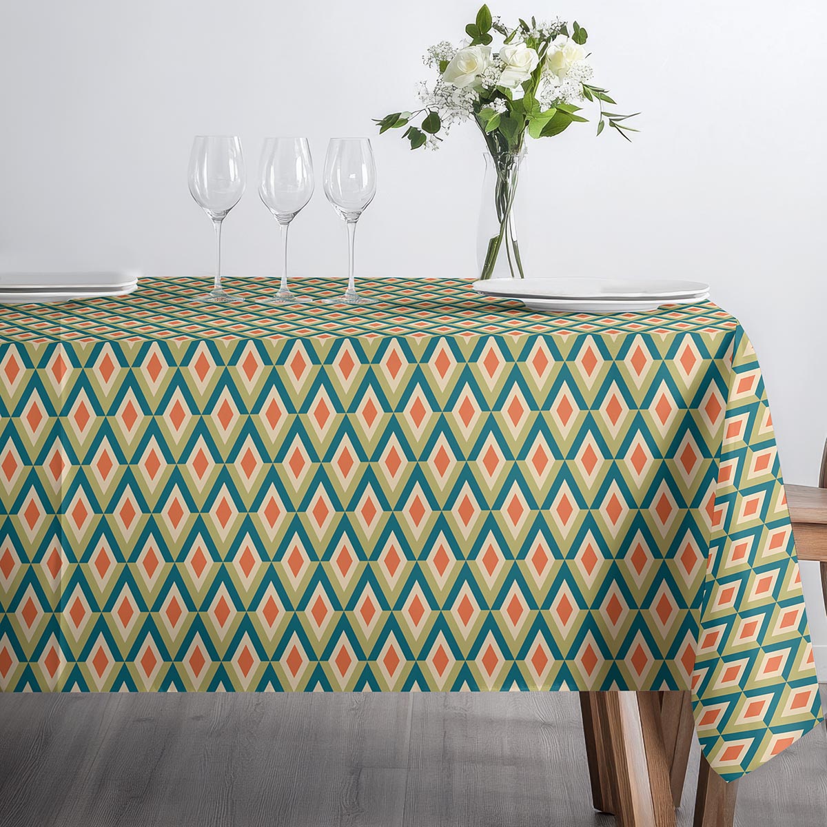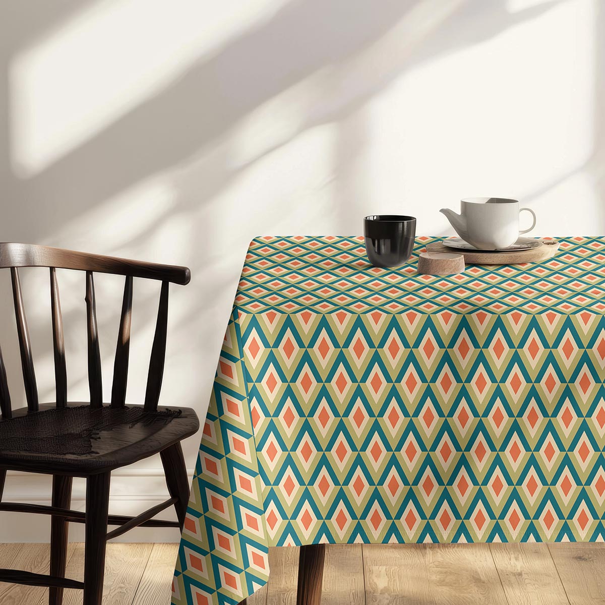 Obrus na stół – geometryczne romby w ciepłych barwach