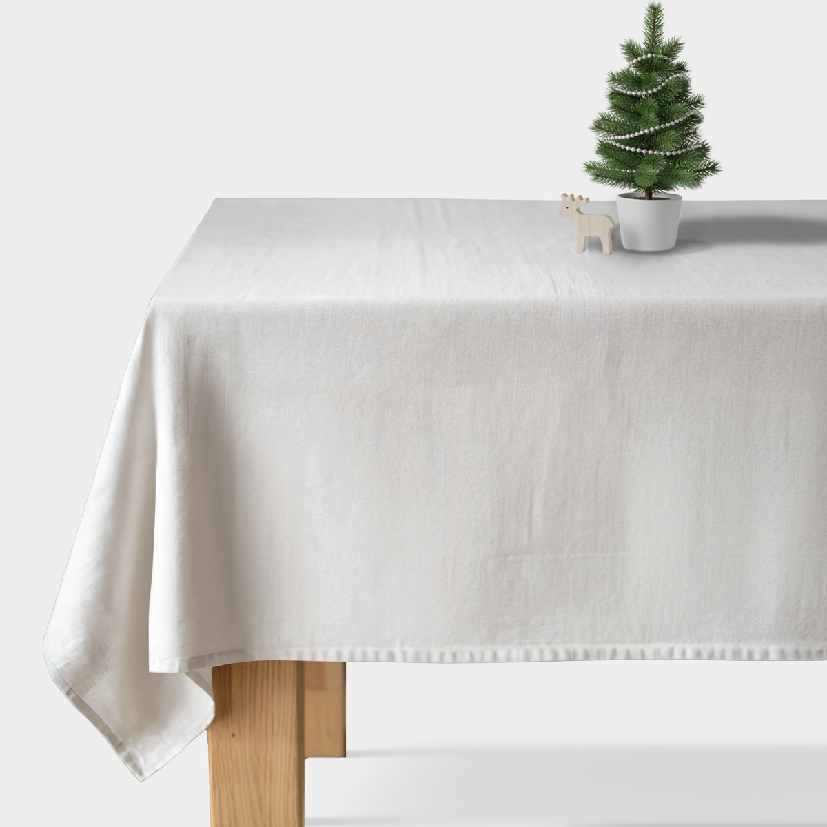 Elegancki gładki obrus w kolorze czystej bieli. Klasyczna i ponadczasowa dekoracja stołu, idealna na święta, uroczystości oraz codzienne nakrycie stołu. Doskonale dopasowuje się do każdego wnętrza.