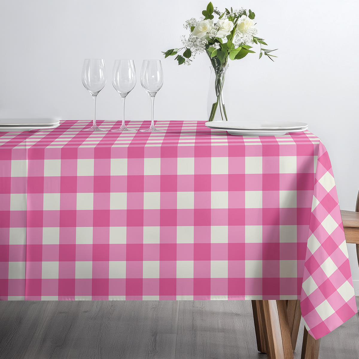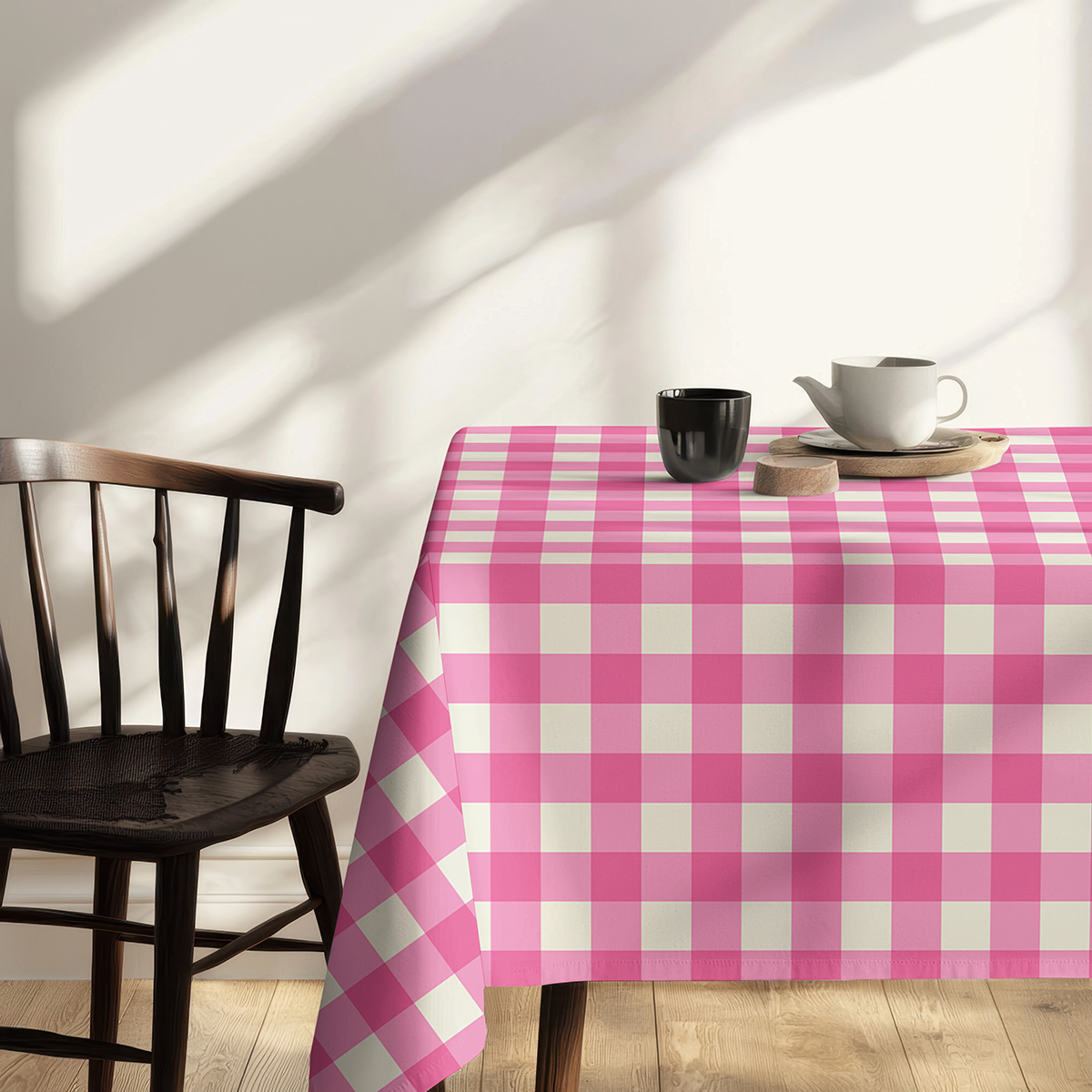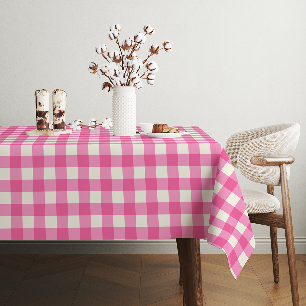 Urokliwy obrus w klasyczną kratę w odcieniach różu i kremu wnosi pogodny charakter do stołu. Idealny na codzienne posiłki i niezobowiązujące przyjęcia, łatwo dopasujesz go do różnych aranżacji.