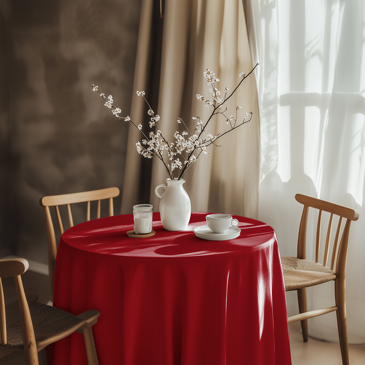 Czerwony obrus okrągły na wymiar – stonowana aura