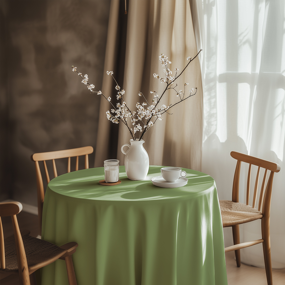 Zielony obrus okrągły na wymiar – delikatna świeżość