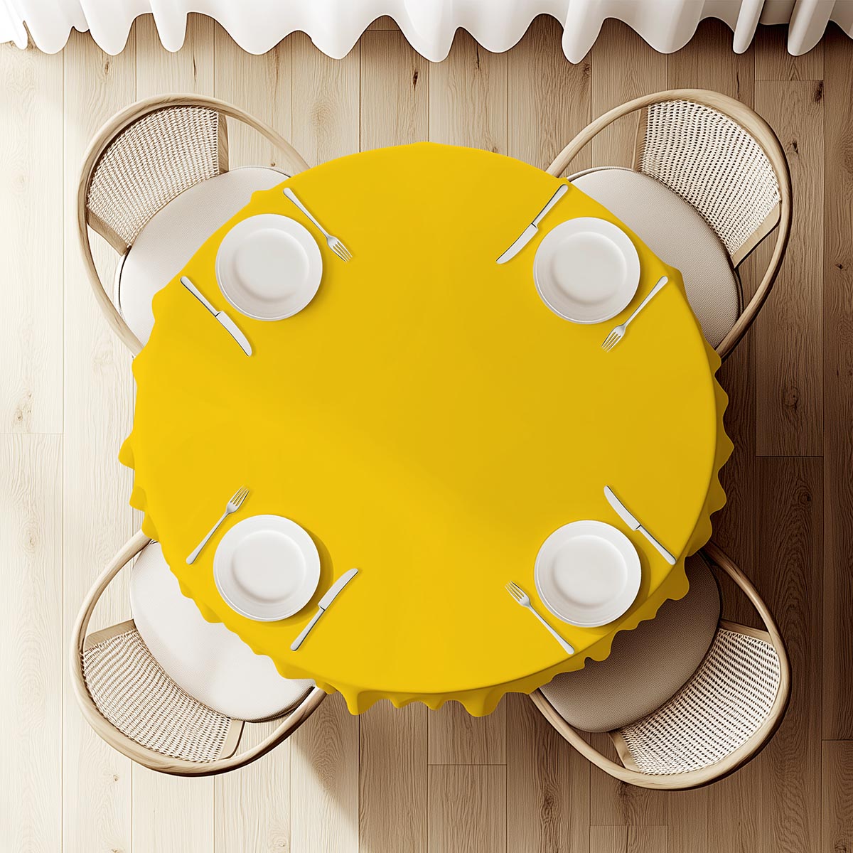 Przykład: stół o średnicy 100 cm → obrus 130 lub 140 cm.