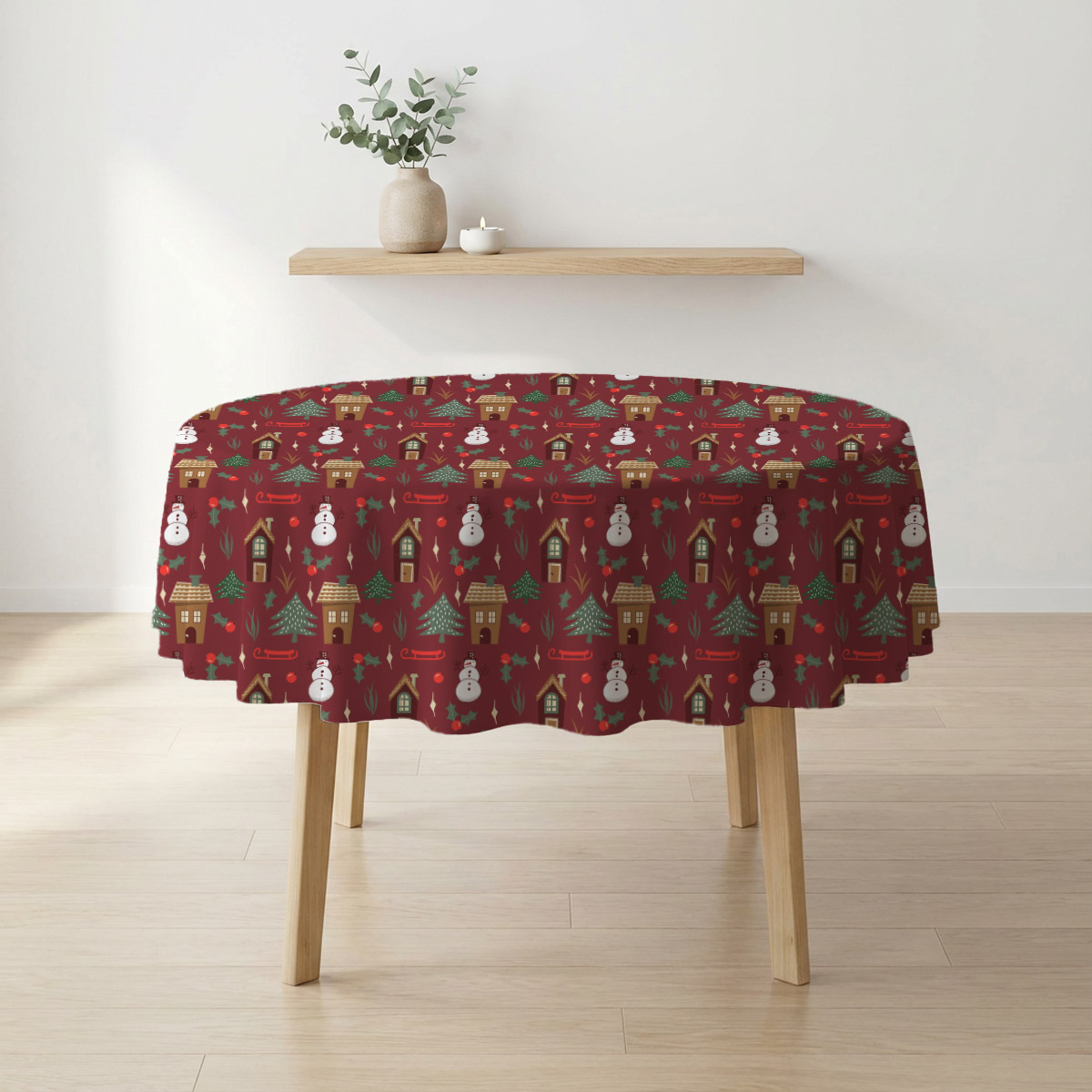 Okrągły obrus świąteczny plamoodporny – motyw zimowy