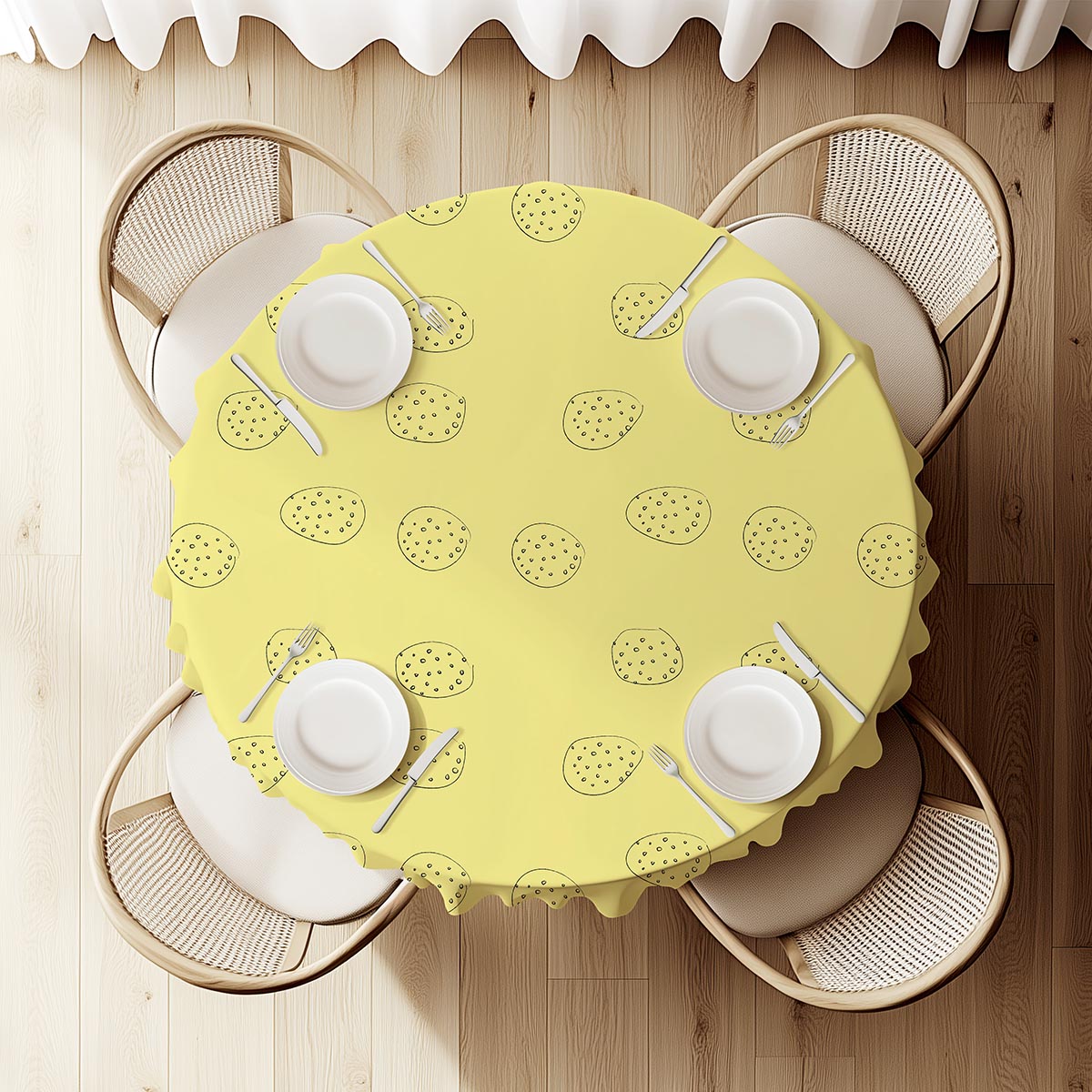 Jasny obrus okrągły z lekko rysowanymi okręgami wprowadza do jadalni pogodny, przytulny nastrój. Materiał jest przyjemny w dotyku i łatwy w pielęgnacji, idealny na codzienne posiłki i spotkania z bliskimi.