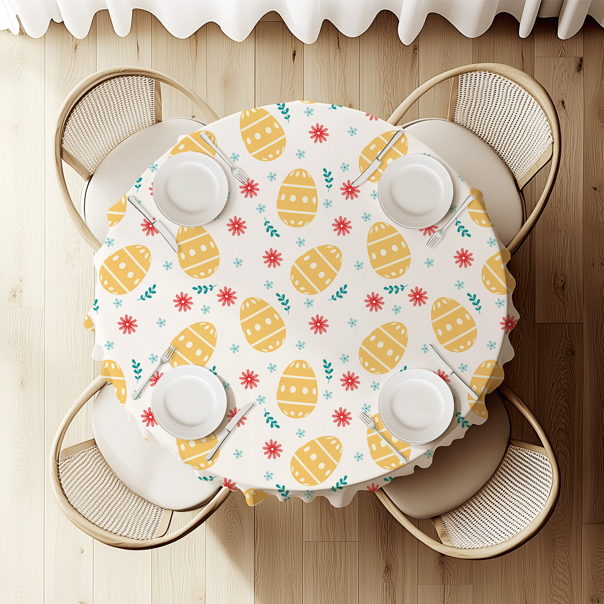 Okrągły obrus wielkanocny na wymiar – pisanki i wiosenne kwiaty