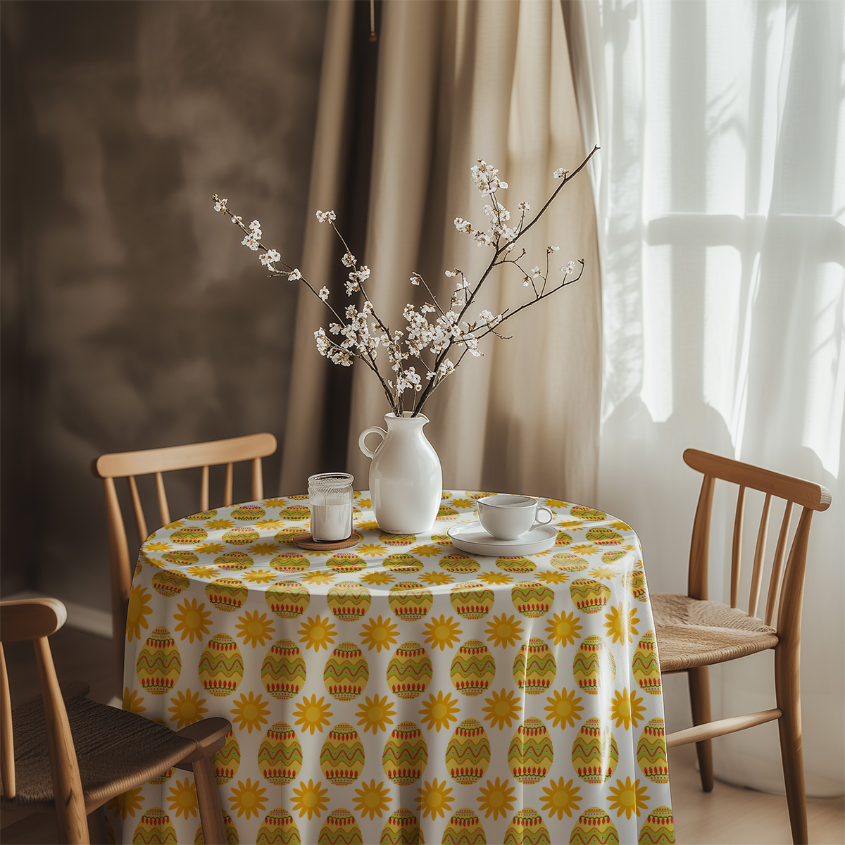 Okrągły obrus wielkanocny na wymiar – wielkanocne pisanki i słoneczka