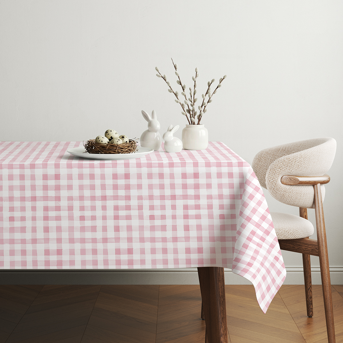 Ten świąteczny obrus wielkanocny z delikatną różowo-białą kratą to propozycja na stół pełen wiosennego uroku. Subtelny wzór kraty wprowadza lekko rustykalny, a jednocześnie elegancki nastrój świąteczny.