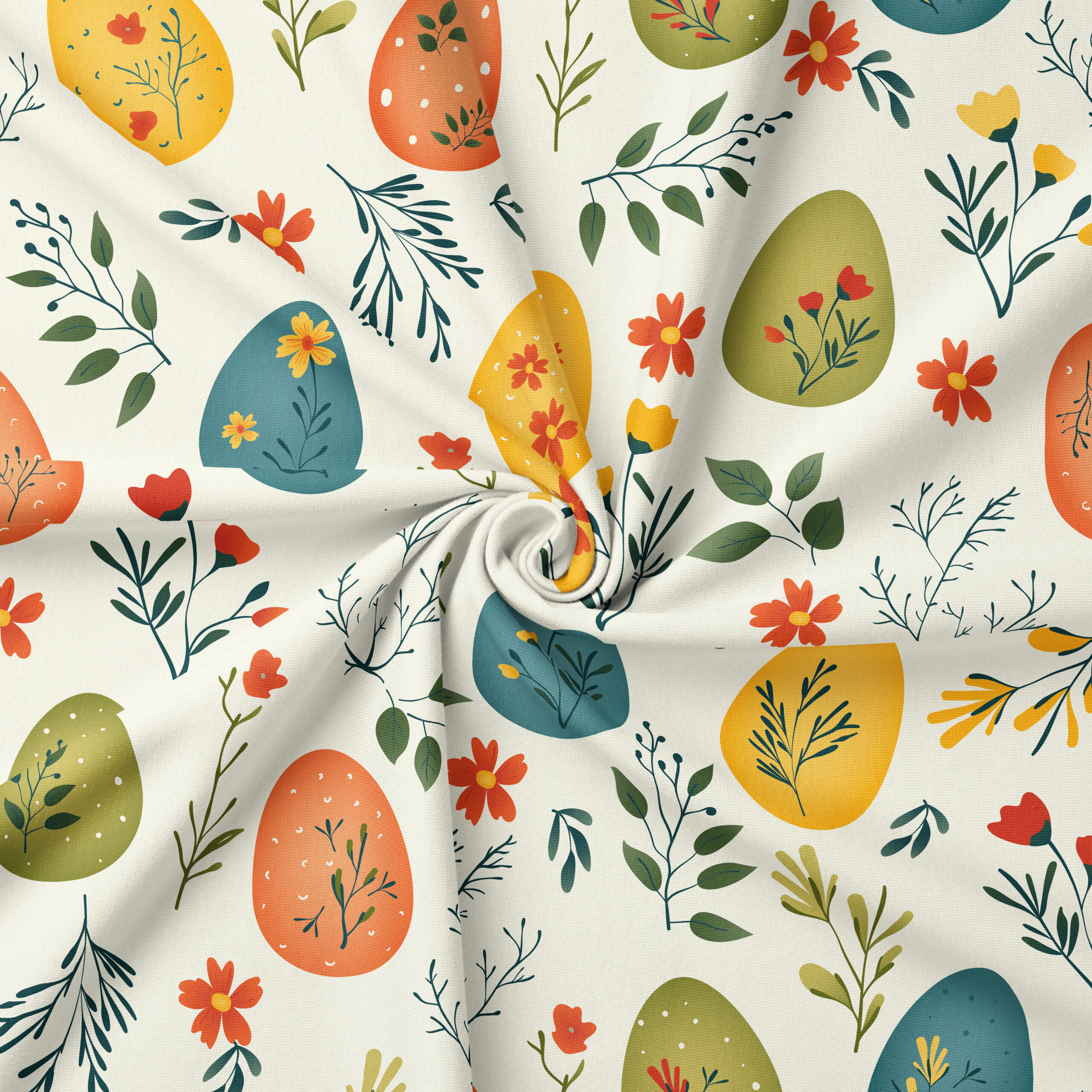 Ten wyjątkowy obrus wielkanocny na wymiar zachwyca jasnym, kremowo-białym tłem oraz dekoracyjnym wzorem kolorowych pisanek, kwiatów i delikatnych gałązek. Motyw inspirowany wiosenną przyrodą wprowadza do wnętrza świeżość, lekkość i radosny, świąteczny klimat, idealny na Wielkanoc i rodzinne spotkania przy stole.
