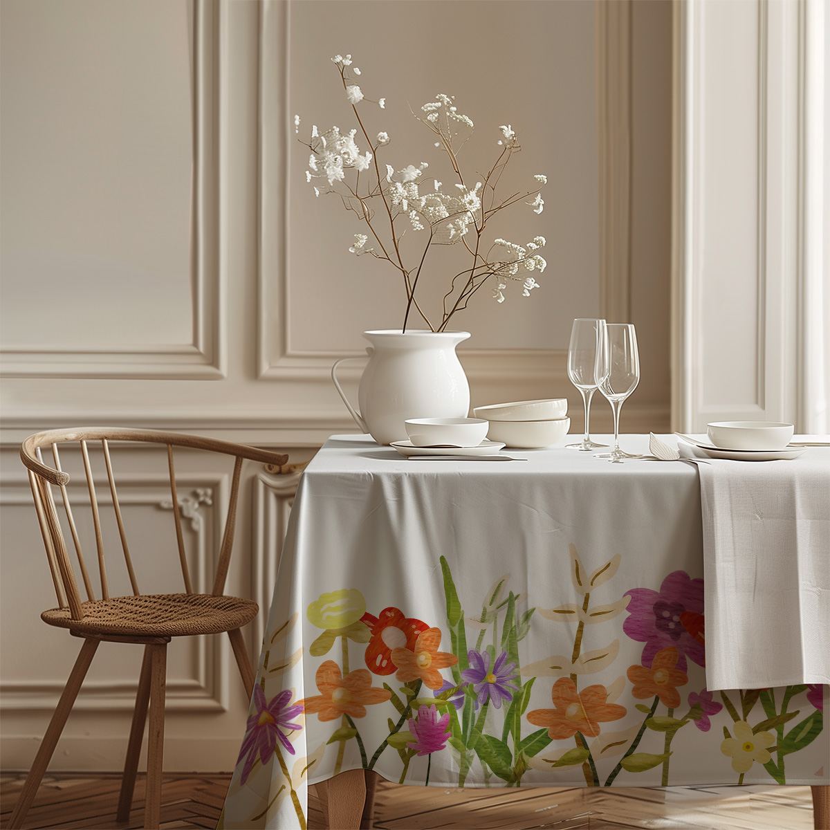 Wielkanocny obrus z malowanymi kwiatami – malowane łąkowe kwiaty