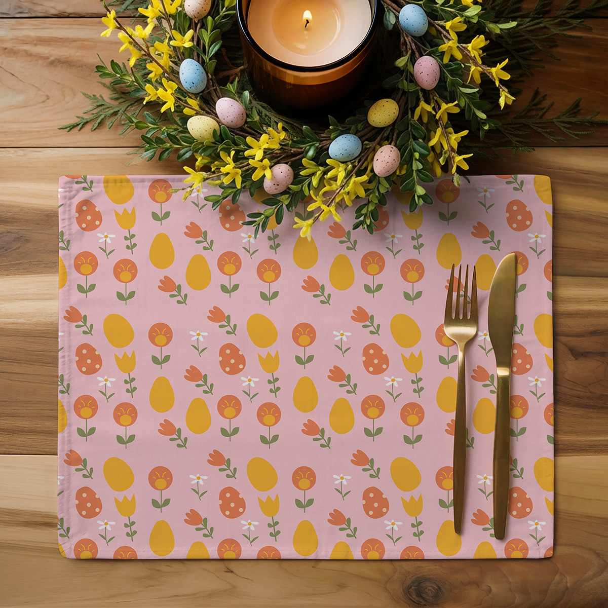 Podkładki wielkanocne na stół – 2 szt. – pastelowe pisanki i wiosenne kwiaty