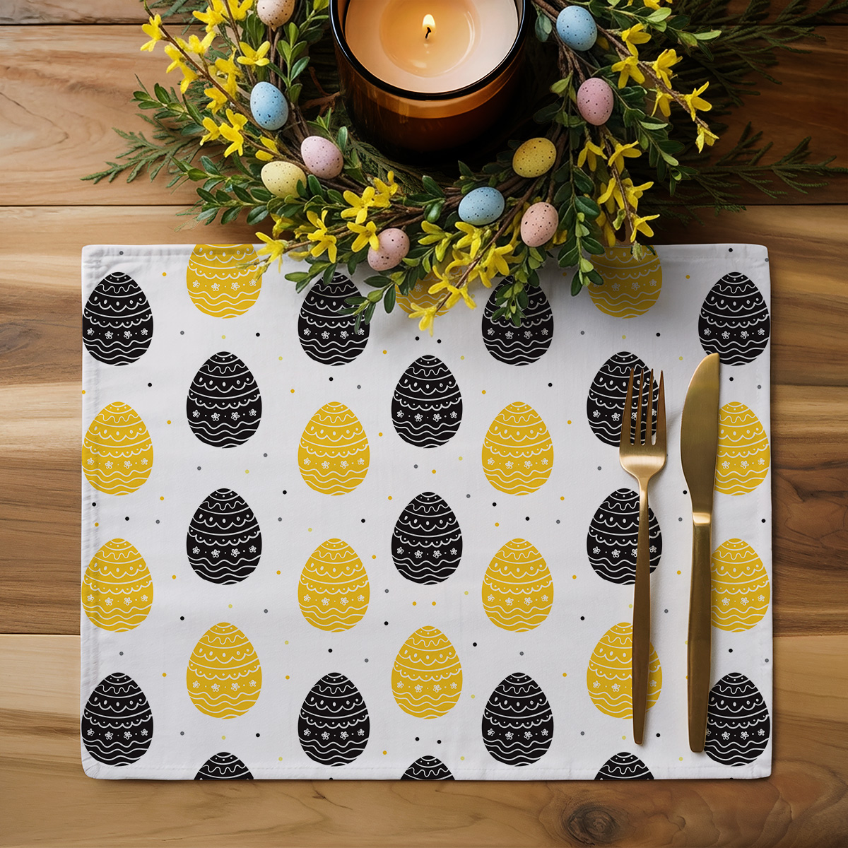 Podkładki wielkanocne na stół – 2 szt. – wielkanocne pisanki w żółci i czerni