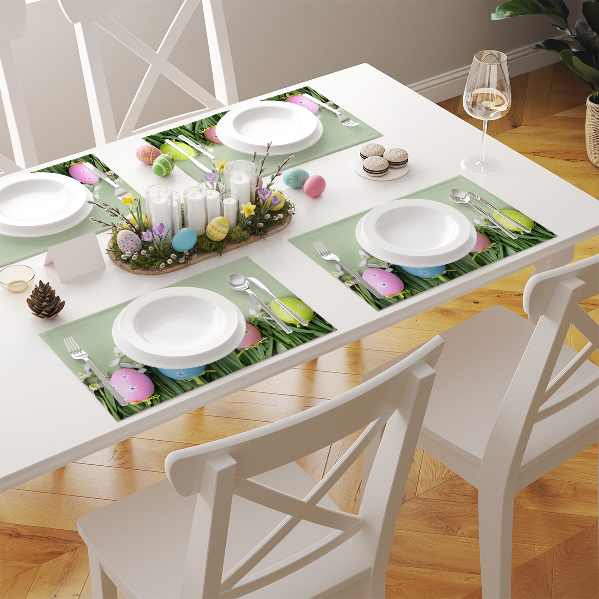 Wielkanocne podkładki na stół – 2 szt. – kolorowe jajka w zielonym trawniku