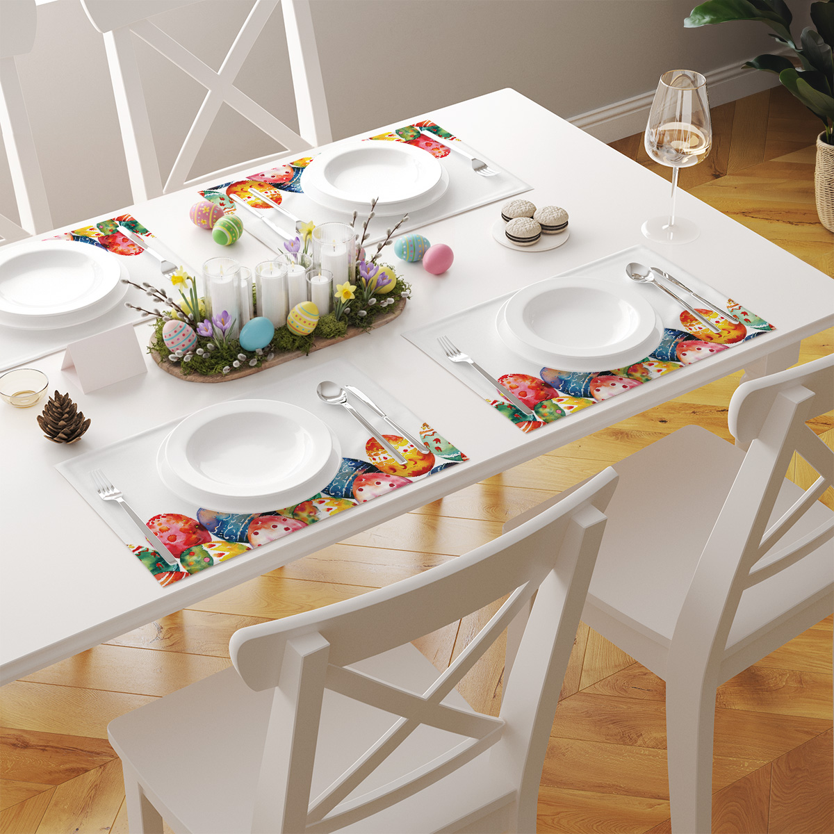 Akwarelowe pisanki nadrukowane przy krawędzi wprowadzają na stół radosny, wiosenny akcent. Podkładki są praktyczne w użyciu i łatwe w pielęgnacji, dzięki czemu sprawdzą się podczas świątecznych posiłków.