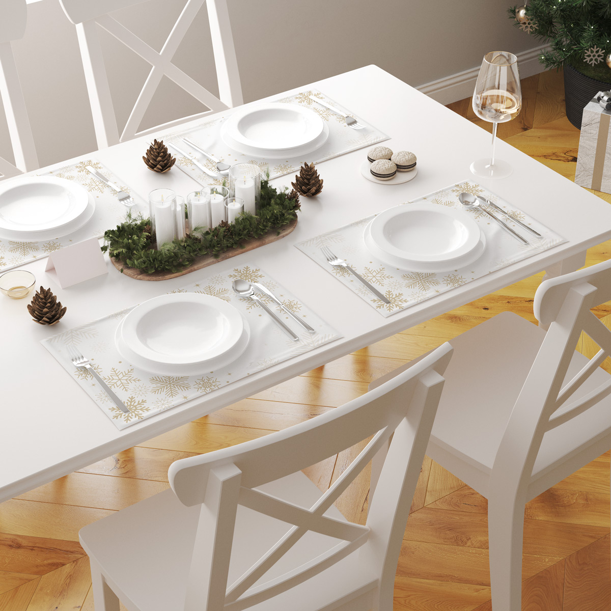 Podkładka świąteczna na stół – biały ze złotymi śnieżynkami – 2 szt.