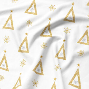 Świąteczna podkładka na stół – biała ze złotymi choinkami i gwiazdkami