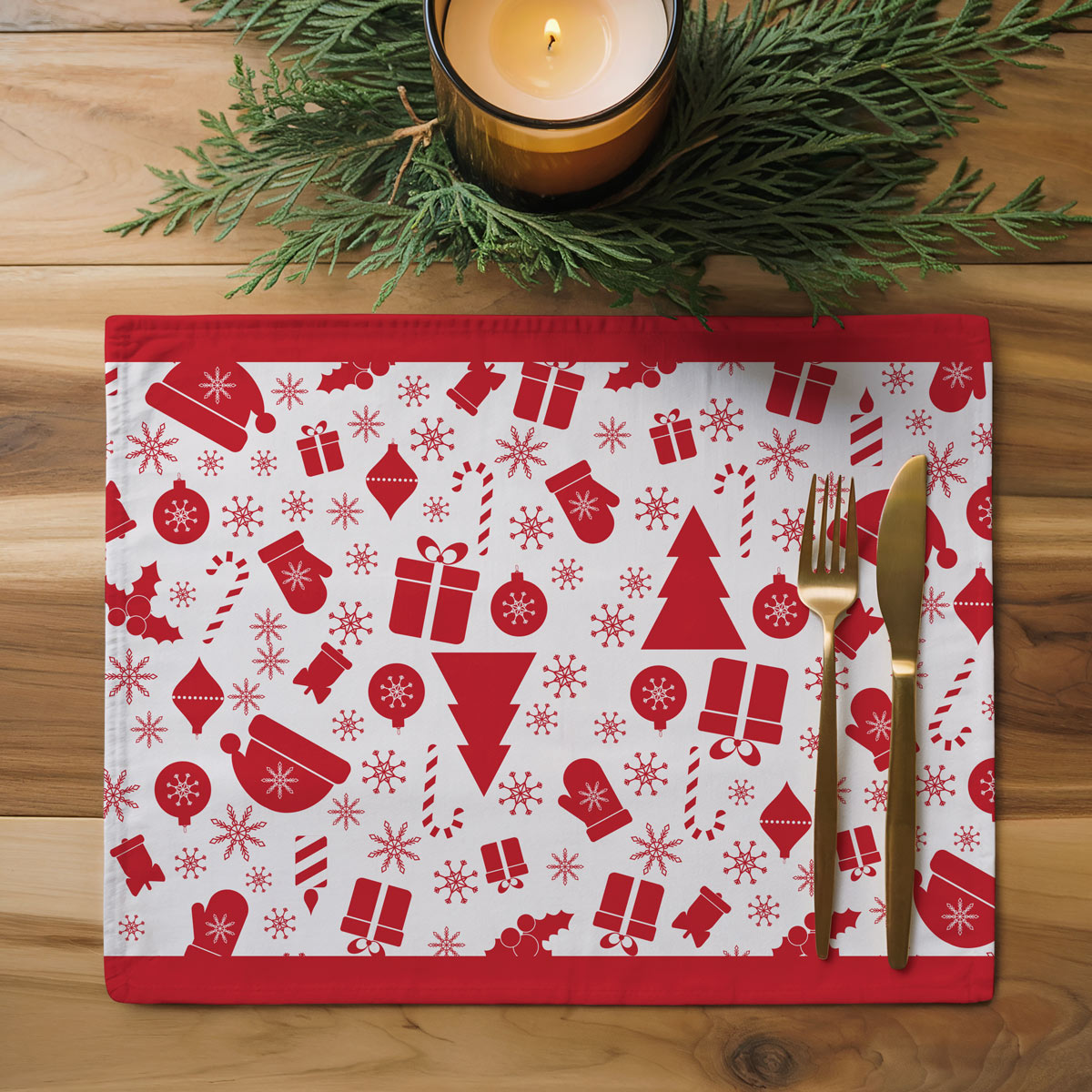 Świąteczna podkładka na stół – biały z czerwonym wzorem świątecznych ikon – 2 szt. (Kopia)