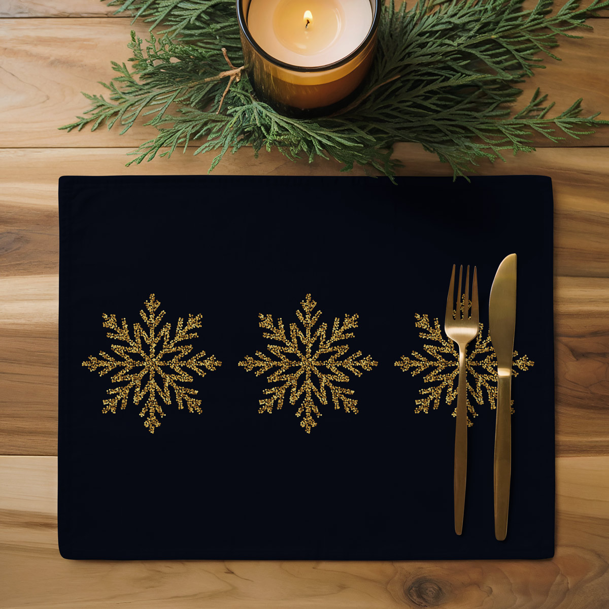 Świąteczna podkładka na stół – czarna z złotymi śnieżynkami – 2 szt.