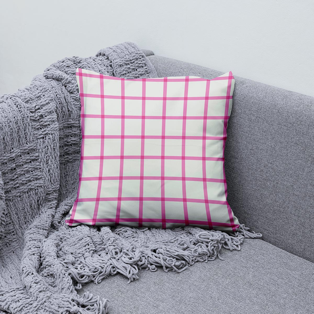 Napisz pierwszą opinię o „Beżowa poduszka dekoracyjna na kanapę – krata w delikatnym różu”