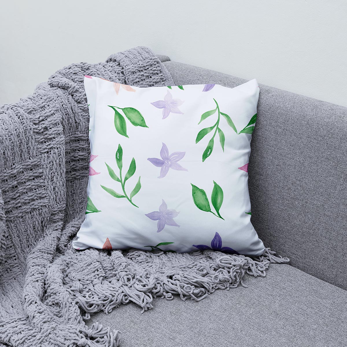 Urocza poduszka dekoracyjna z subtelnym wzorem akwarelowych kwiatów i listków odświeży każde wnętrze. Wypełnienie antyalergiczne premium zapewnia miękkość i komfort na co dzień.