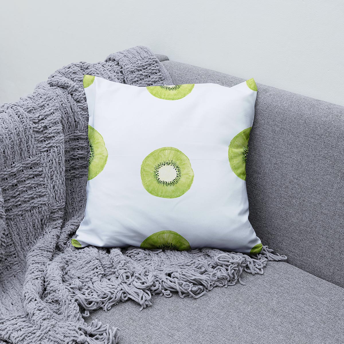 Biała poduszka ozdobna – soczyste plastry kiwi