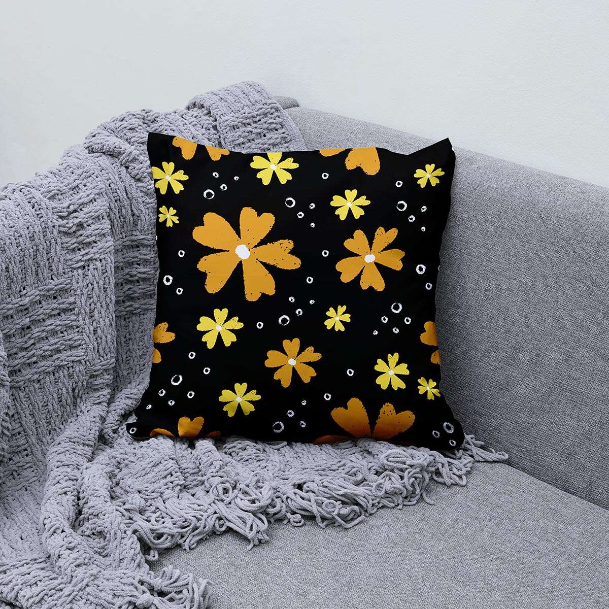 Czarna poduszka ozdobna – kwiatowy rytm