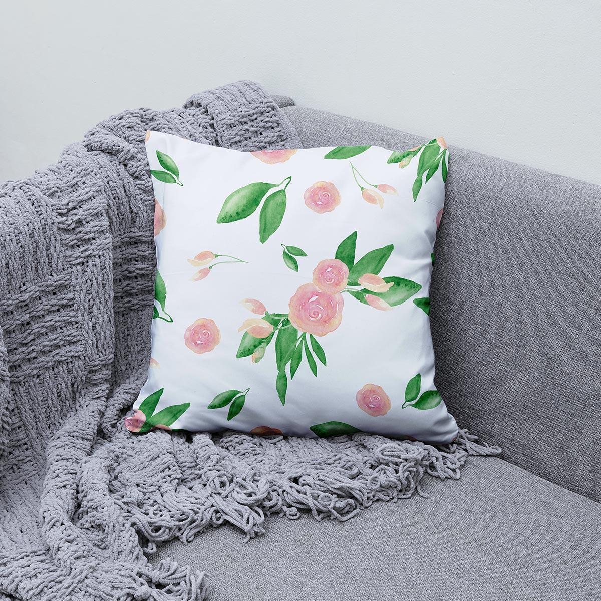 Subtelna kompozycja akwarelowych różyczek i zielonych listków wprowadza do wnętrza lekkość i romantyczny charakter. Miękka poduszka dekoracyjna z antyalergicznym wypełnieniem premium sprawdzi się jako delikatny akcent w salonie lub sypialni.