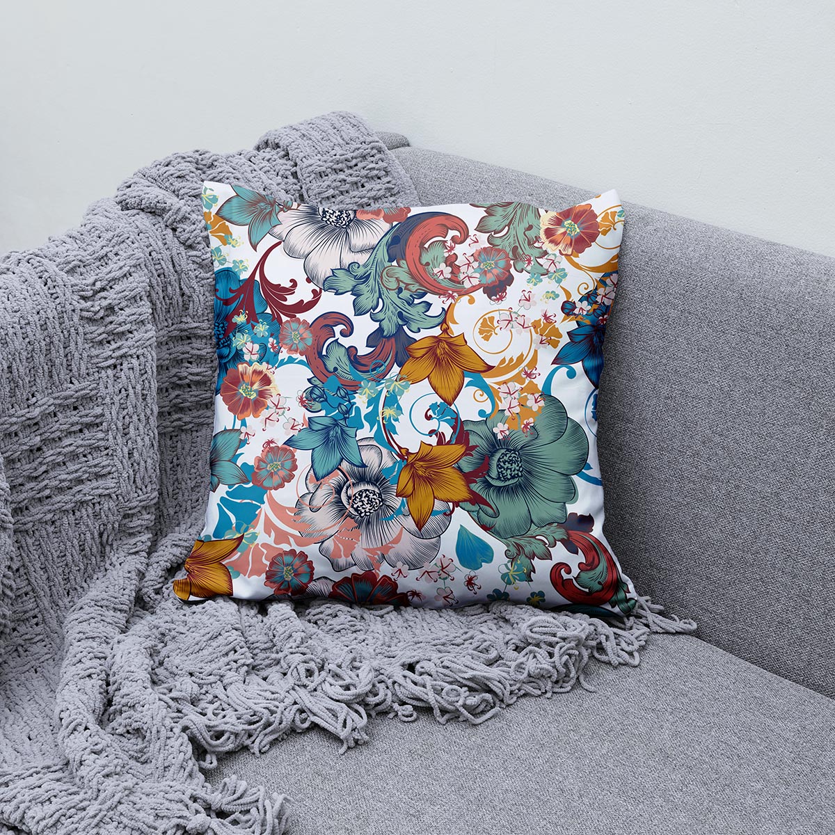 Poduszka dekoracyjna – kwiatowy ogród z ornamentami