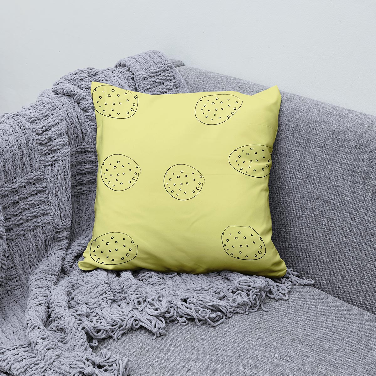 Napisz pierwszą opinię o „Żółta poduszka ozdobna – łagodne okręgi z kropeczkami”
