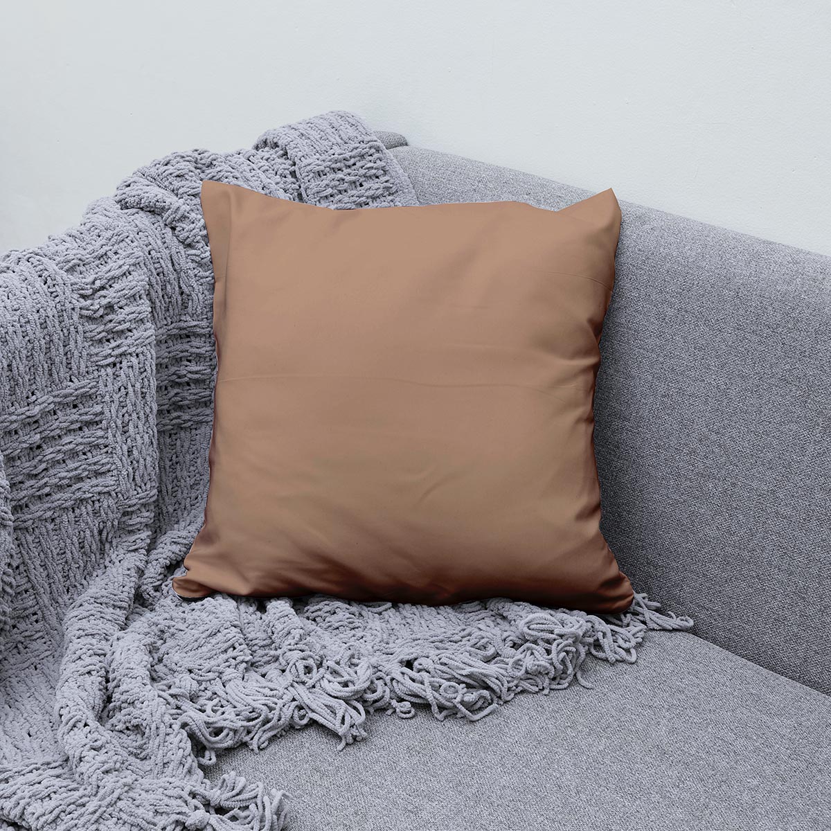 Brązowa poduszka dekoracyjna z kolekcji subtelna aura zachwyca prostotą i elegancją — jednolity, gładki kolor bez wzoru tworzy ciepłą, uniwersalną podstawę do aranżacji zarówno nowoczesnych, jak i klasycznych wnętrz.