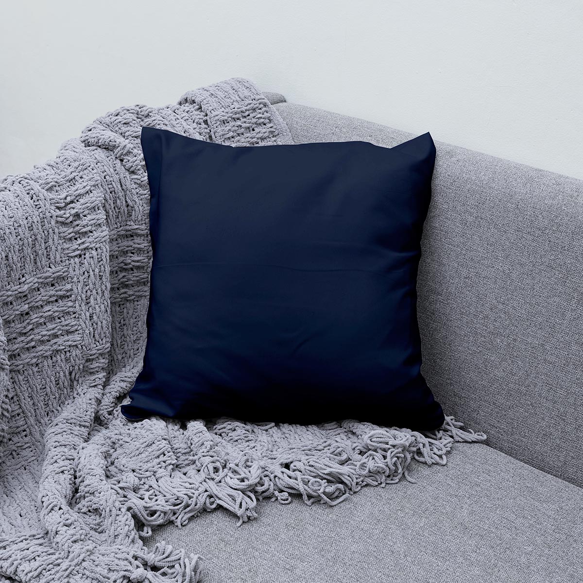 Ta poduszka dekoracyjna wyróżnia się jednolitym, minimalistycznym wzorem i starannym wykończeniem. Gładka tkanina i nasycony odcień granatu tworzą spokojny, elegancki akcent, który pasuje zarówno do nowoczesnych, jak i klasycznych aranżacji.